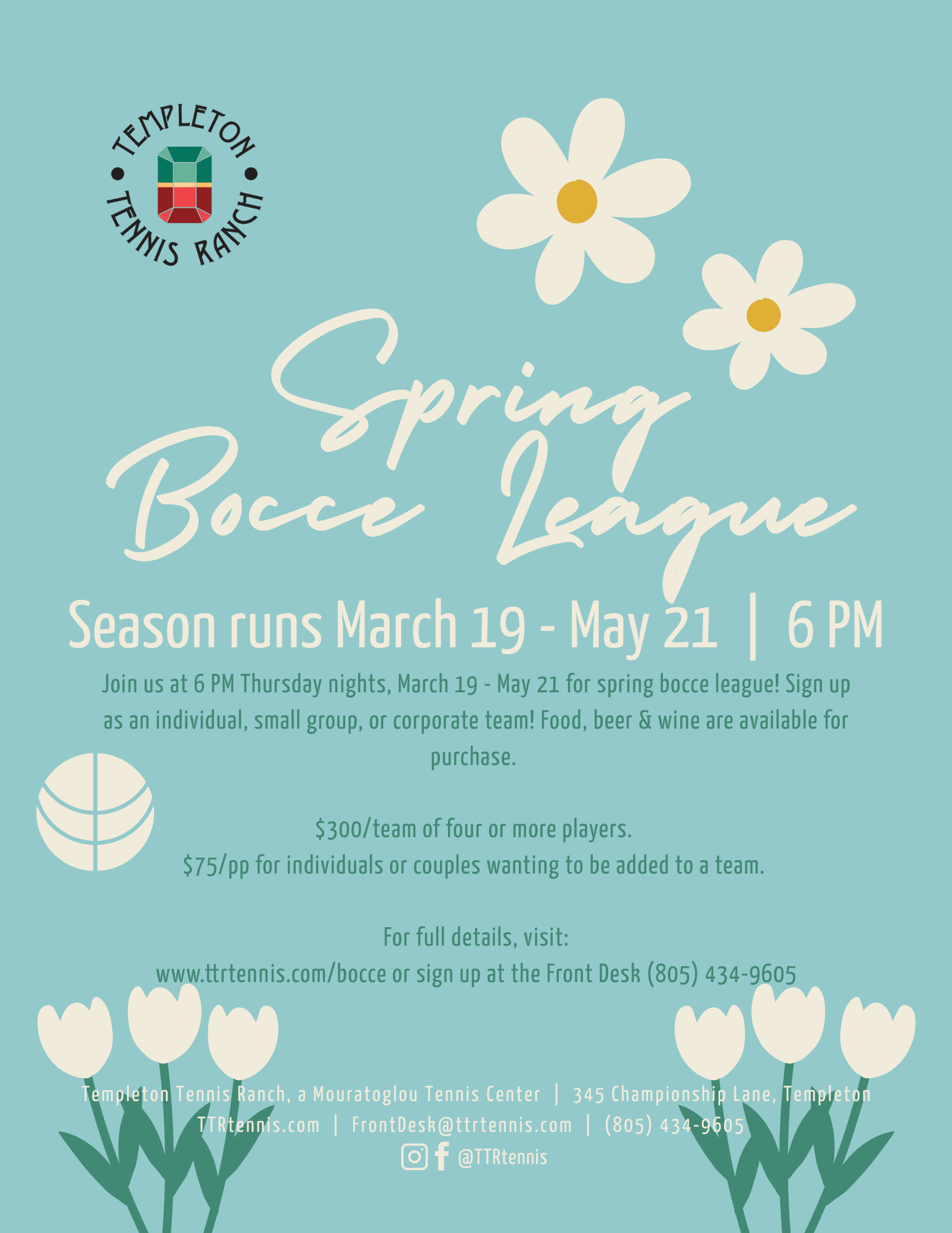 Questions: Call 805-434-9605, or email: frontdesk@ttrtennis.com